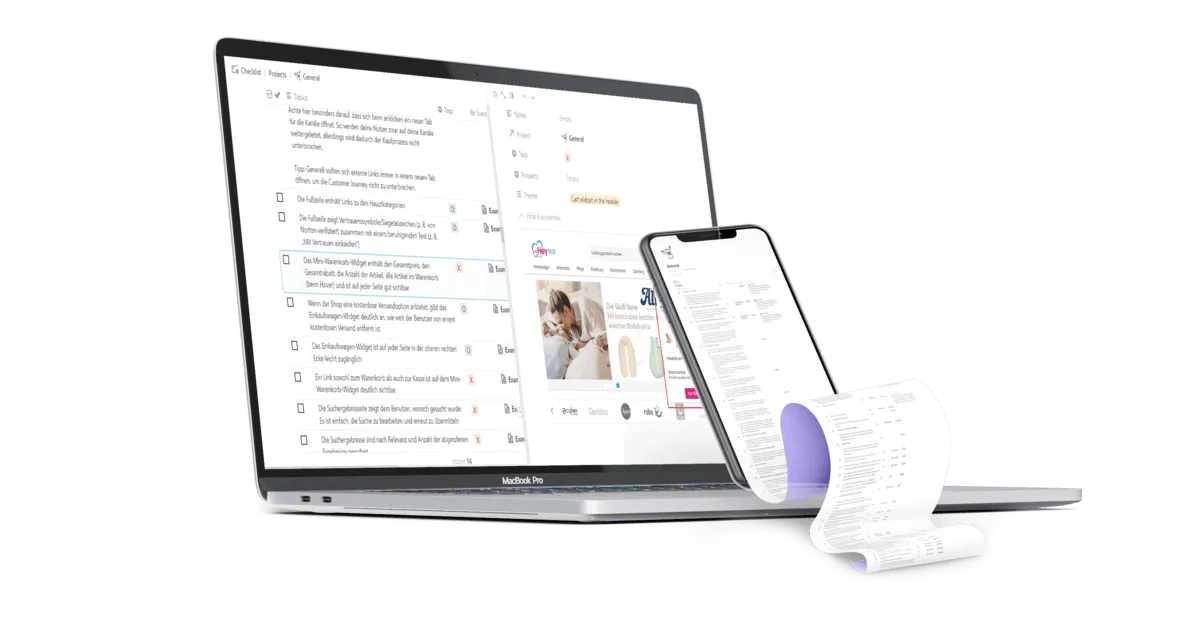 Erhalten eine komplettes Audit deines Shops auf Basis der Checkliste und vielen weiteren Daten.